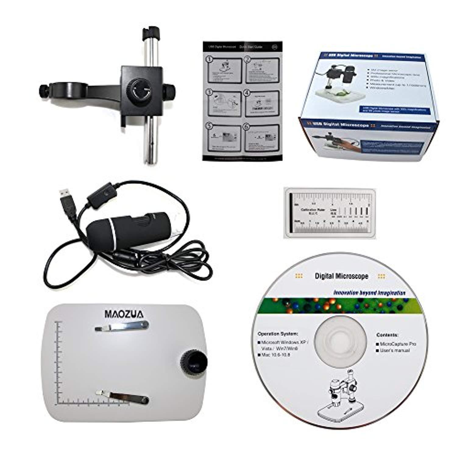 MAOZUA 5MP USB Microscope 20x-300x Magnifier Video Microscope with Professional Base Stand Support Windows XP Vista Win7 Win8 Win10 Mac