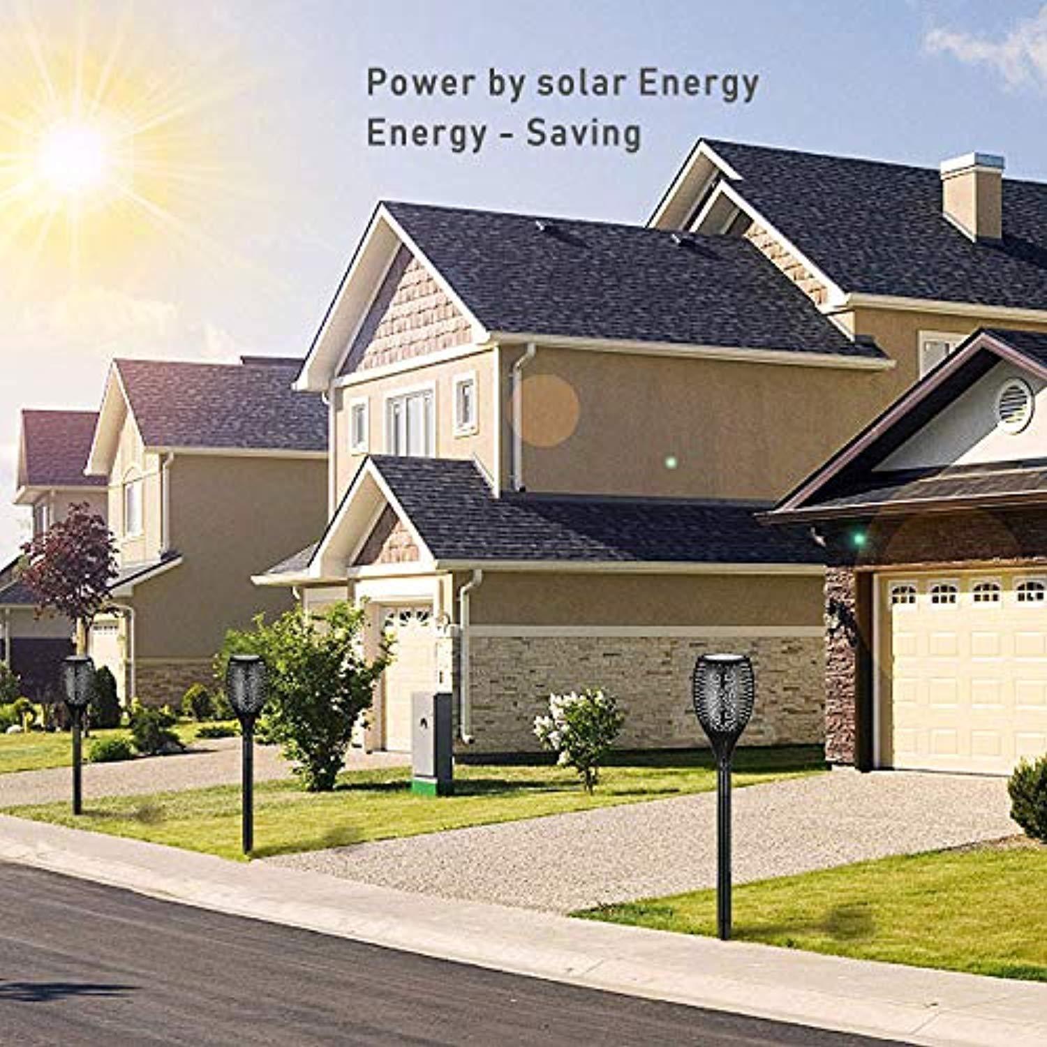 Dancing Flame Design - A safe alternative to the real “flames” — 96pcs LEDs in the light cast a safe, soft, mood-enhancing glow.The actual height of the solar torches is 33.5 inches.(Accessories include)