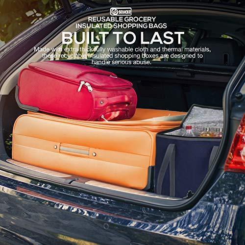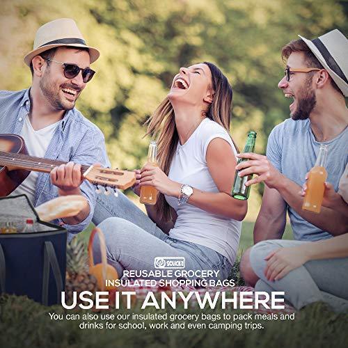 ✅ HAS ROOM FOR EVERYTHING YOU NEED - Make the most of every grocery trip. Each insulated 16" x 13" x 9"shopping bag in this package has more than enough space for all your groceries. ✅ KEEPS ITEMS FRESH - It doesn't matter whether you're carrying fresh produce or a hot meal, each Sclickz shopping tote functions both as a cooler and thermal bag so your frozen food will stay cold and and warm food stays fresh much longer ✅ EASY TO CARRY AND STOW - Don't let the size of these heavy duty reusable totes fool you. They’re not only fitted with a pair of strategically placed canvas handles to make them a breeze to carry, they're also completely foldable for easy storage. Say bye to bulky trolley and shopping cart. ✅ BUILT TO LAST - Made with extra thick fully washable cloth and thermal materials, these recyclable insulated shopping boxes are designed to handle serious abuse. You won't have to worry about accidental tears while shopping ever again. ✅ DURABLE ZIPPERS - Even if the insulated reusable grocery bags themselves are tough, it would all be for nothing if the zippers give out, right? Don’t worry. We only use premium quality zippers in all our products.